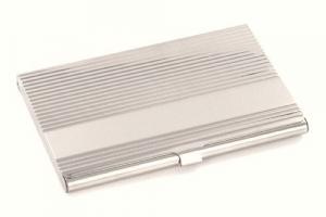This beautifully designed business card case is a perfect gift for any business person or recent graduate! This card holder has a factory embossed ribbed pattern on the top, with a high polish horizontal stripe for engraving a name, company name, initials, or even a short message! The rest of the case is high polish silver color.