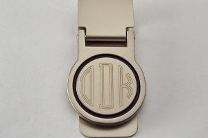 This matte finish hinged money clip is perfect for the person who doesn't like the high polish shiny finish on most money clips. The round top has a framed circle for engraving a name, initials or a monogram. These look especially sharp with a round monogram!